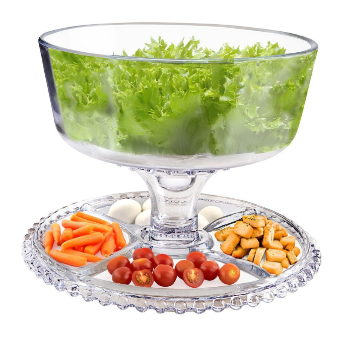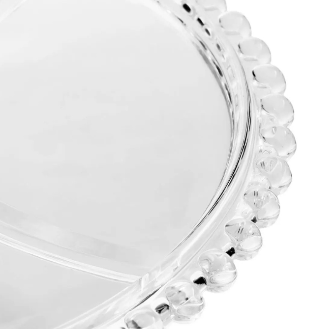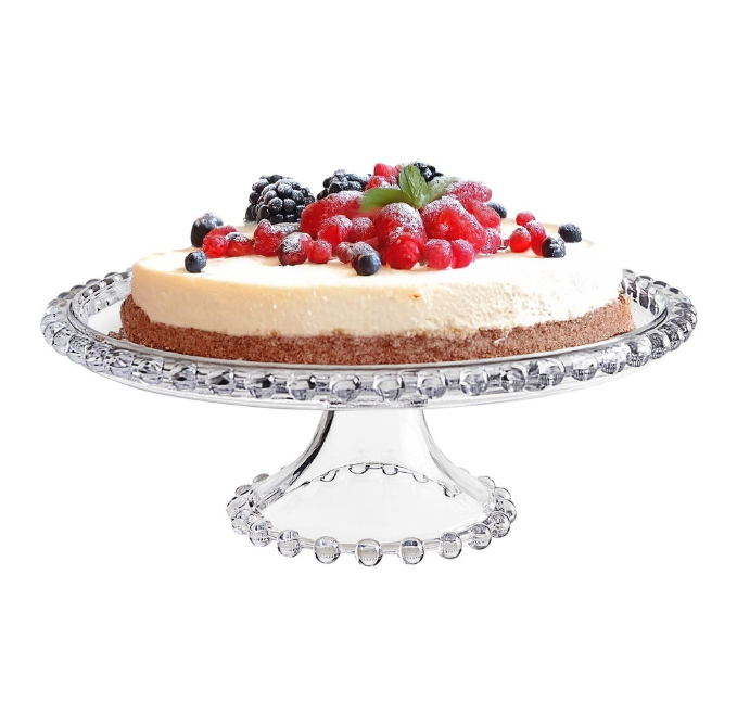 Este prato de cristal transparente é perfeito para servir bolos, tortas, saladas, bebidas ou sobremesas com elegância e praticidade.