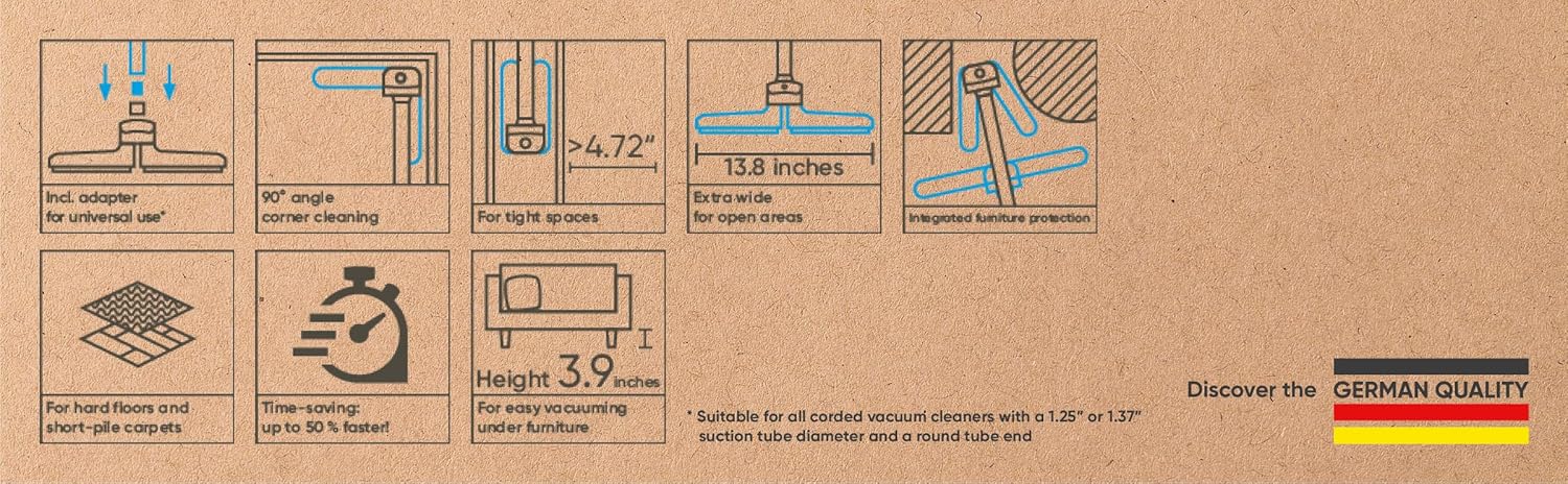 - 【ACESSÓRIOS UNIVERSAIS PARA BOCAL DE ASPIRADOR】A escova para bocal de aspirador flip-flop é compatível com todos os tubos redondos padrão para aspiradores de pó com diâmetro de 1,25" ou 1,37". A entrega inclui um adaptador para bocal de aspirador que você pode usar para conectar o bocal de 1,25".